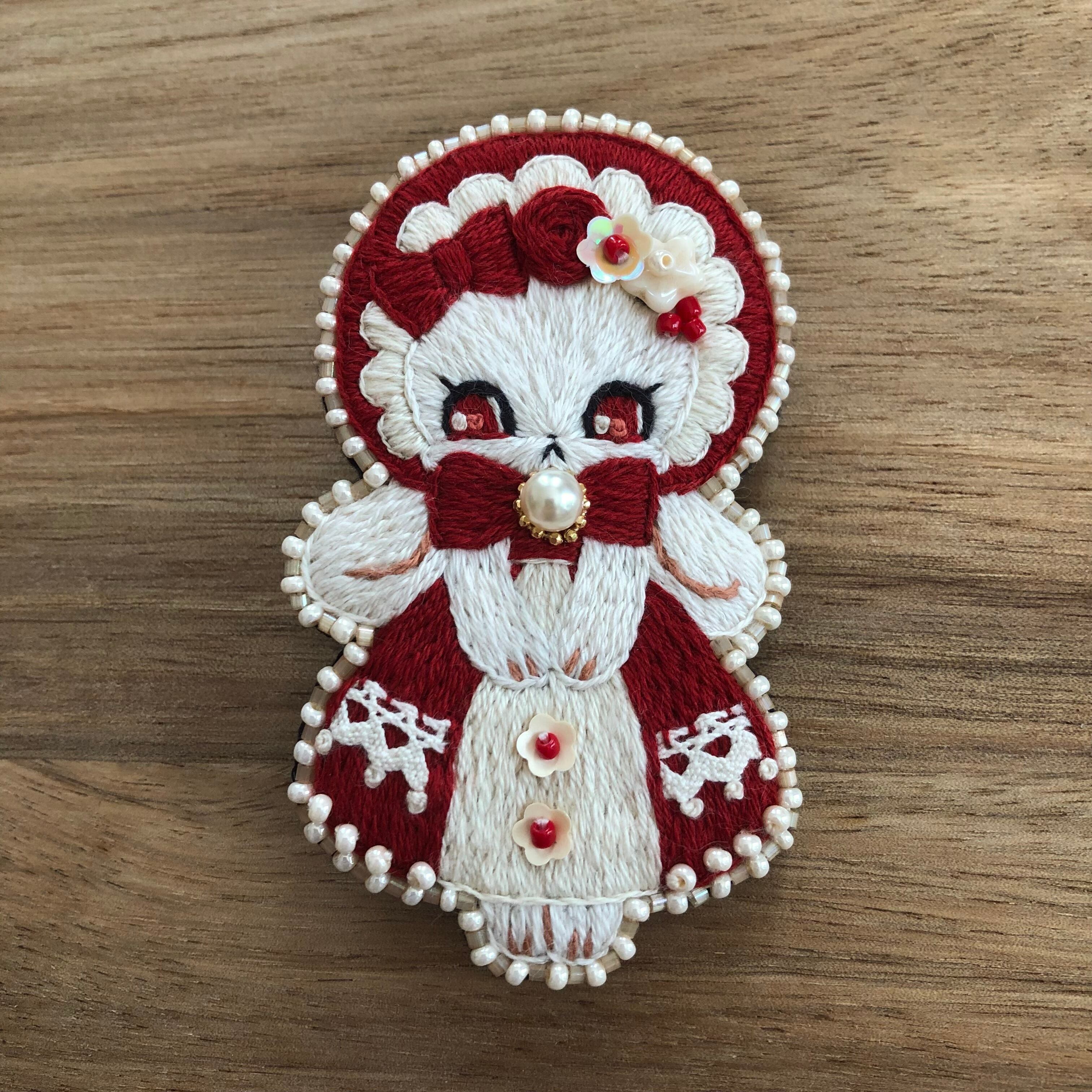 一針一針ゆっくり丁寧に刺繍したハンドメイド一点物のブローチです。