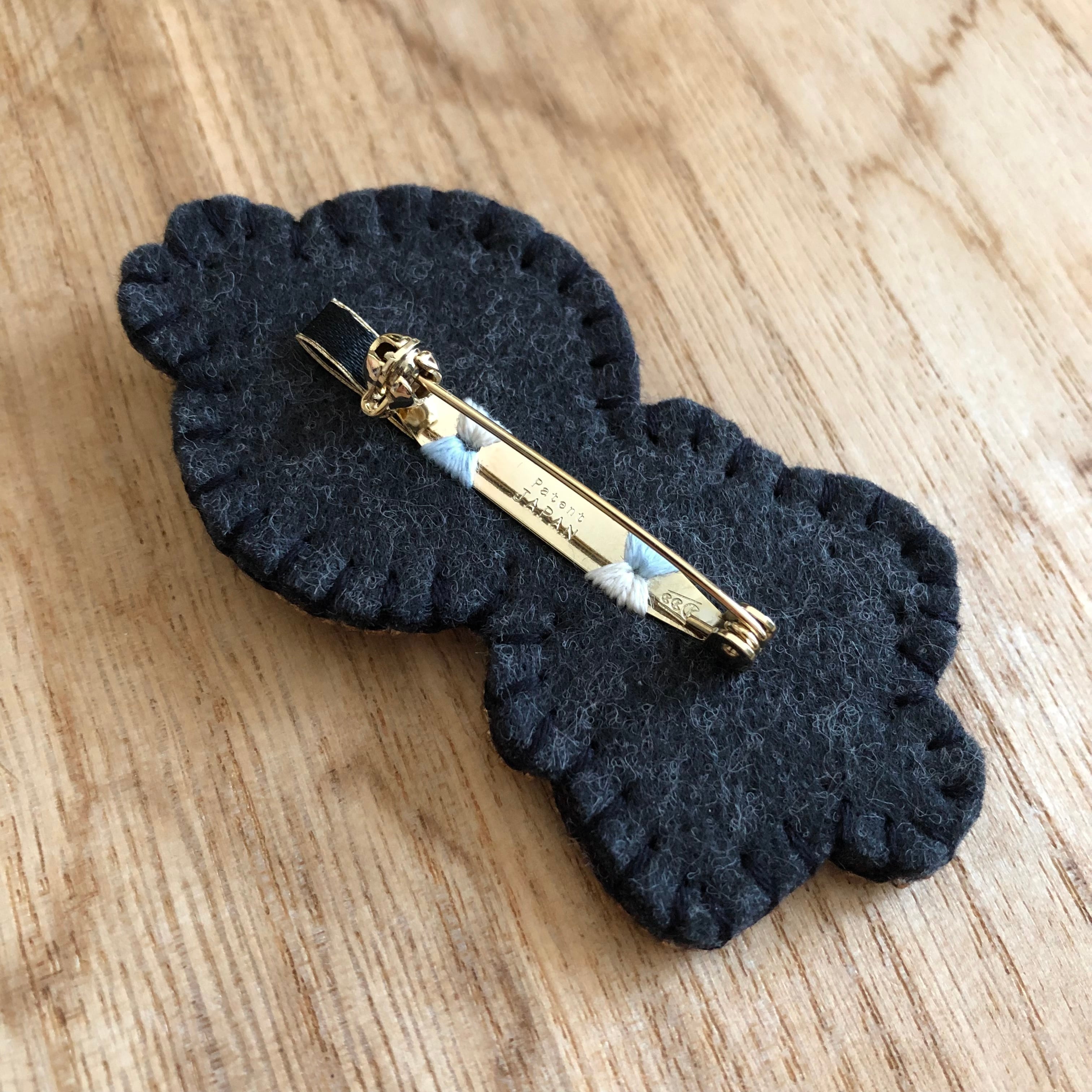 刺繍糸・ビーズ・フェルト・チャーム・回転式ブローチピン(日本製)・シリコンキャッチ(落下防止にお使い下さい)